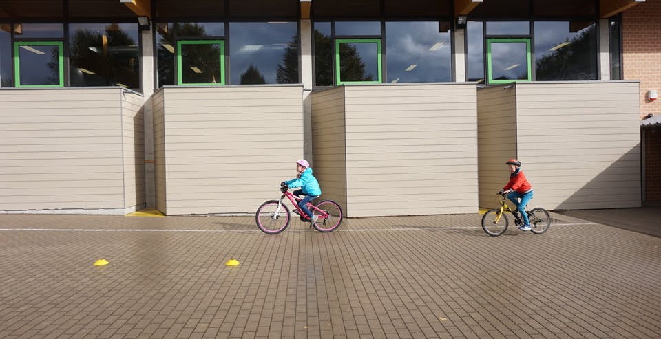 2. la maîtrise du vélo peut être travaillée à l’aide d’exercices dans la cour de récréation. Notre test comprend un ensemble d’aptitudes à acquérir avant de se lancer dans le trafic en toute sécurité et ce, même accompagné : rouler droit, prendre des virages, freiner et s’arrêter sans perte d’équilibre. Un enfant est considéré comme ayant une maîtrise suffisante du vélo lorsqu’il peut parcourir le circuit en moins de 75 secondes, indépendamment de son âge ou de son année d’études ;