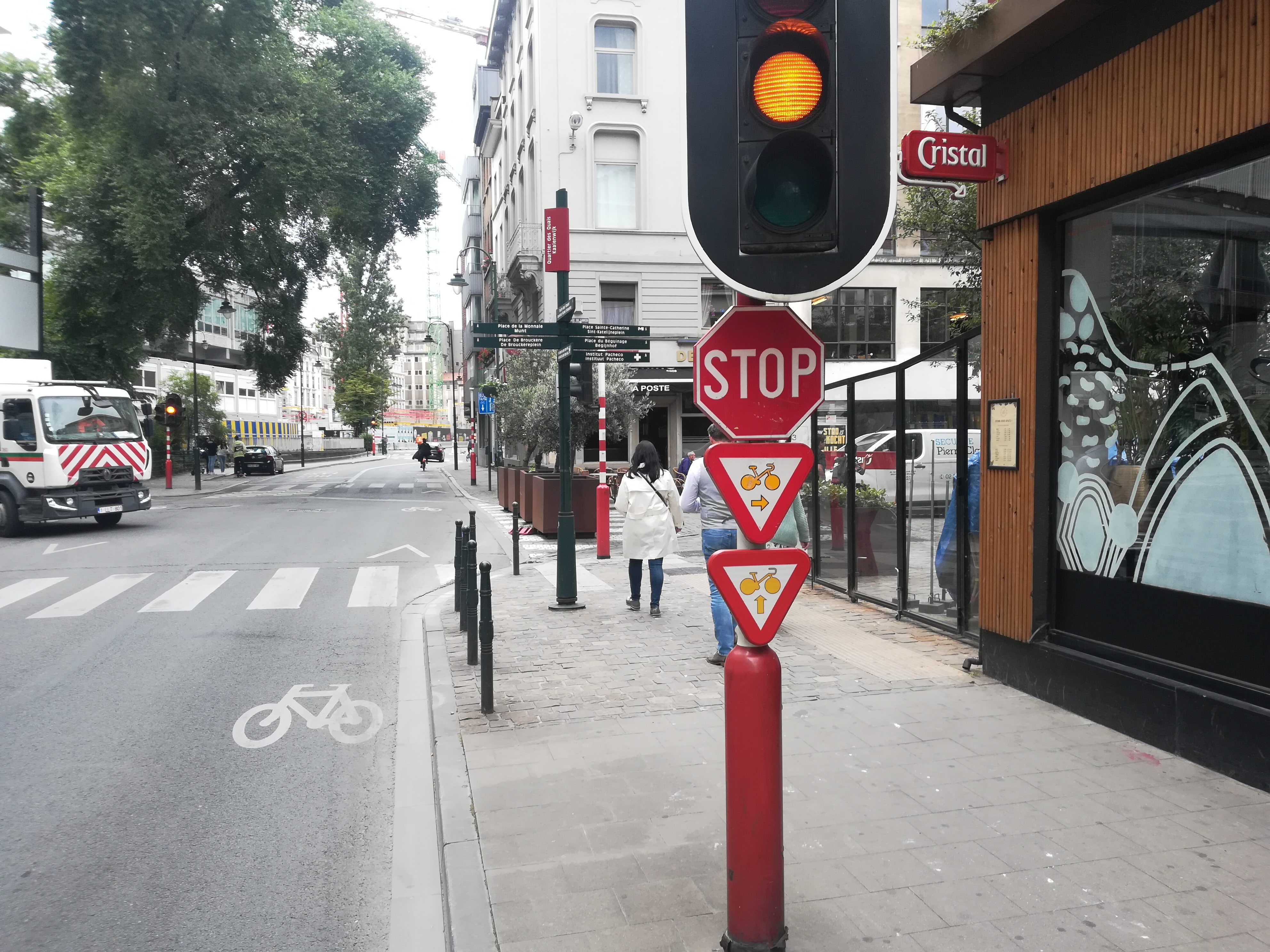Le cycliste peut franchir un feu rouge ou orange quand un panneau l'y autorise. Une mesure très pratique qui permet de gagner du temps.