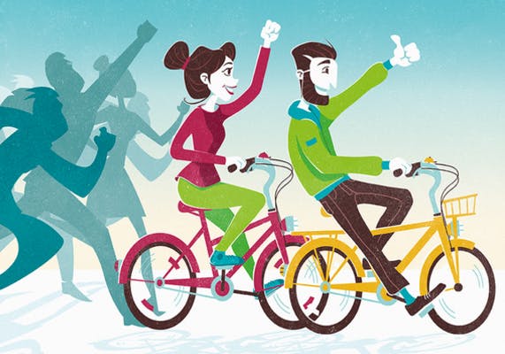 Samen met Brusselse organisaties zet Via Velo volwassenen in het zadel. Soms letterlijk. Een unieke lessenreeks geeft hen de nodige praktische vaardigheden mee en maakt hen wegwijs in het stadsverkeer.